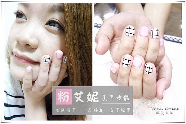 經過反覆上色照光以後,粉嫩紅搭配黑白格紋就大功告成囉!!