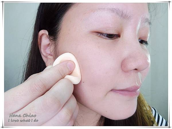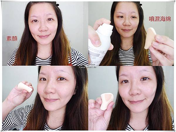 我習慣稍微噴濕海綿(不需要太濕),再沾取適量的粉底