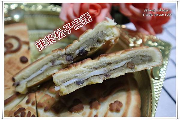抹茶香氣濃郁不苦澀,在餅皮跟麻糬的柔軟中,松子增加了風味跟層次感,整體表現不錯!!