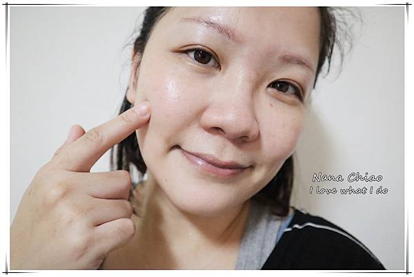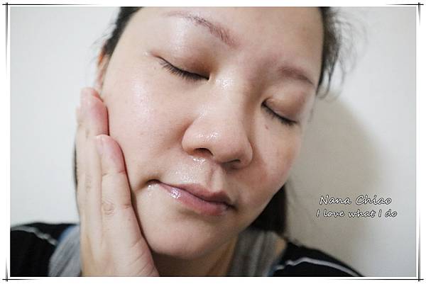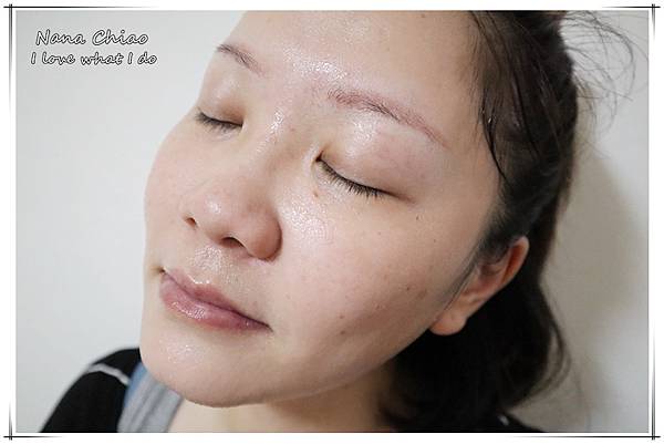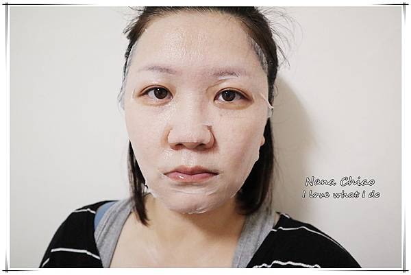 取下面膜後,可以看到精華液相當水潤,就像隱形水聚膜