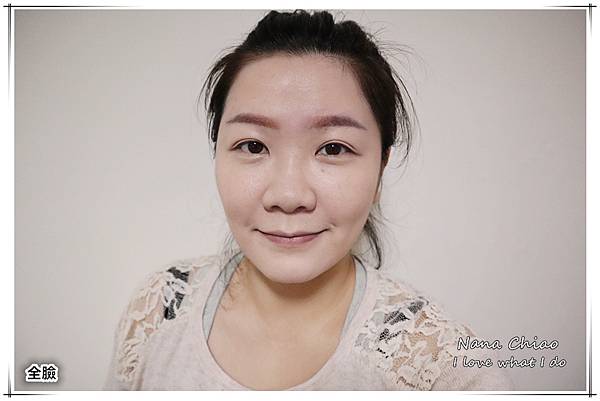 粉底質地輕透不黏膩,從半邊差異就能看出妝感很~自然![]()