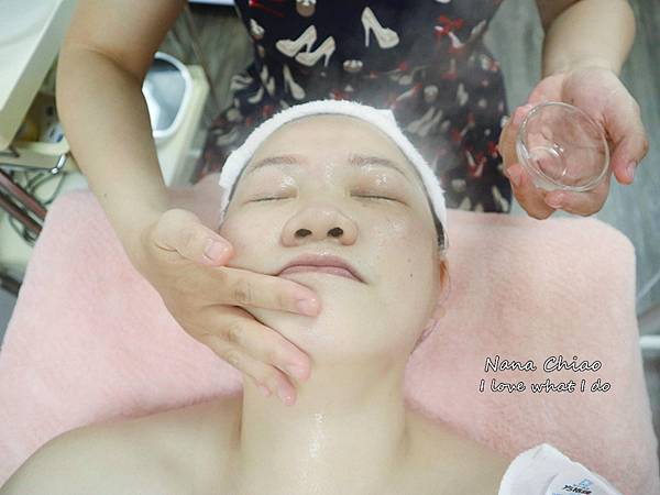 接著使用按摩乳(冷噴補水持續不間斷)