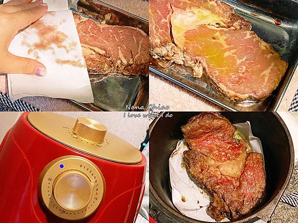 雖然我都說煎牛排,但其實是使用氣炸鍋(人不用等在旁邊,比較方便阿XDDD)