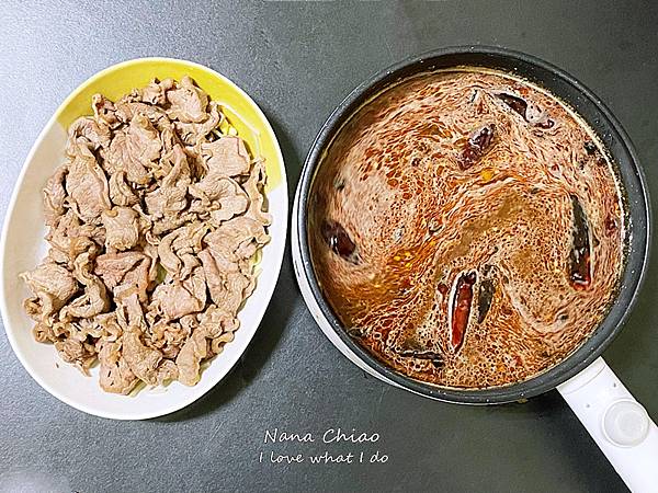 而用麻辣湯底香料包製作的水煮牛肉兼具麻辣香