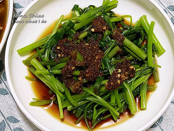 一般燙青菜大多是淋醬油膏、油蔥酥等