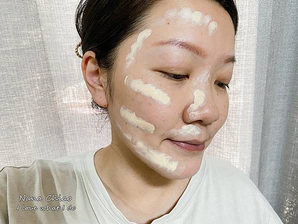 先塗抹半邊,搭配沾濕的美妝蛋(我是噴化妝水)