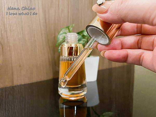 而紅精萃如同它的名字,顏色看起來是紅棕色,搭配玻璃瓶身,整體相當有質感