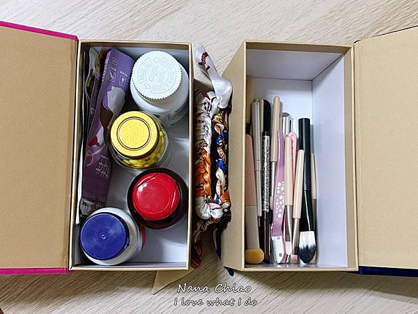 因為是硬盒,我就拿來放刷具(都忘記自己是美妝部落客起家QQ)還有補充品!!!!